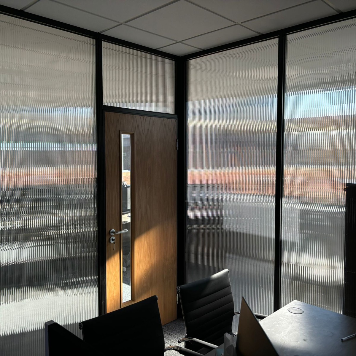 Комфорт сотрудников, отсутствие бликов на мониторах, аккуратные стеклянные перегородки.